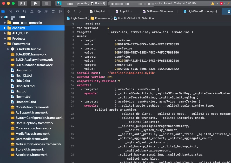看下穿山甲的文档,有些库是需要自己在xcode里面加的