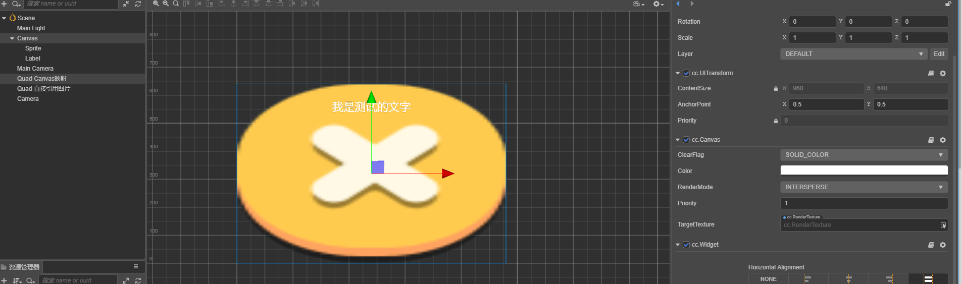 有图是canvas通过RenderTexture,渲染到quad上边的.显示异常.