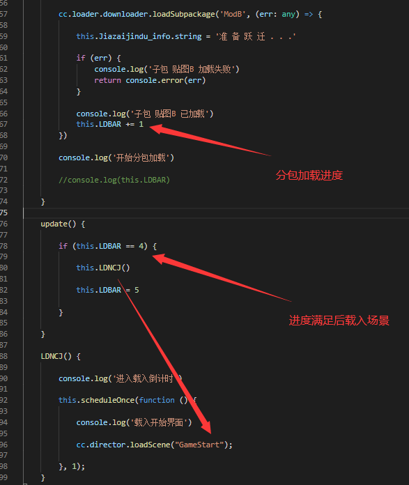 因此新建了一个场景 先加载子包 子包加载之后 再进入引用子包资源的场景