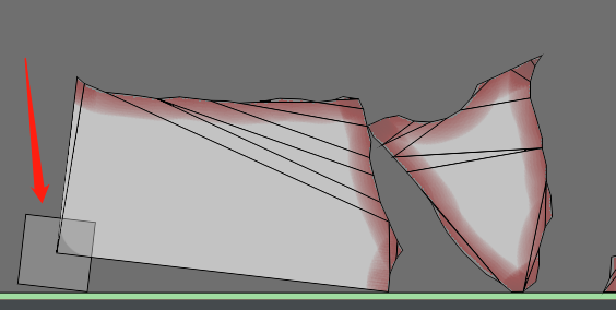 但当从节点左边的中间位置水平向右切割时,有几率出现问题,打开绘制碰撞形状的调试信息,发现: