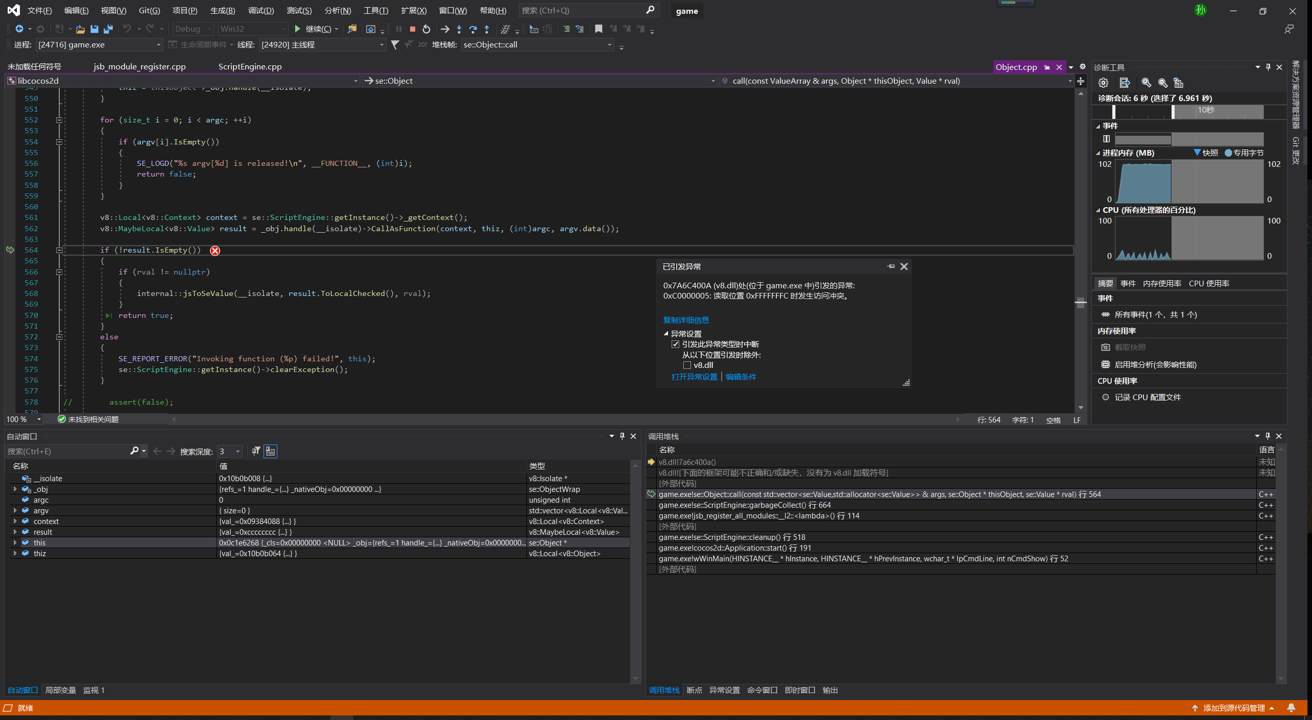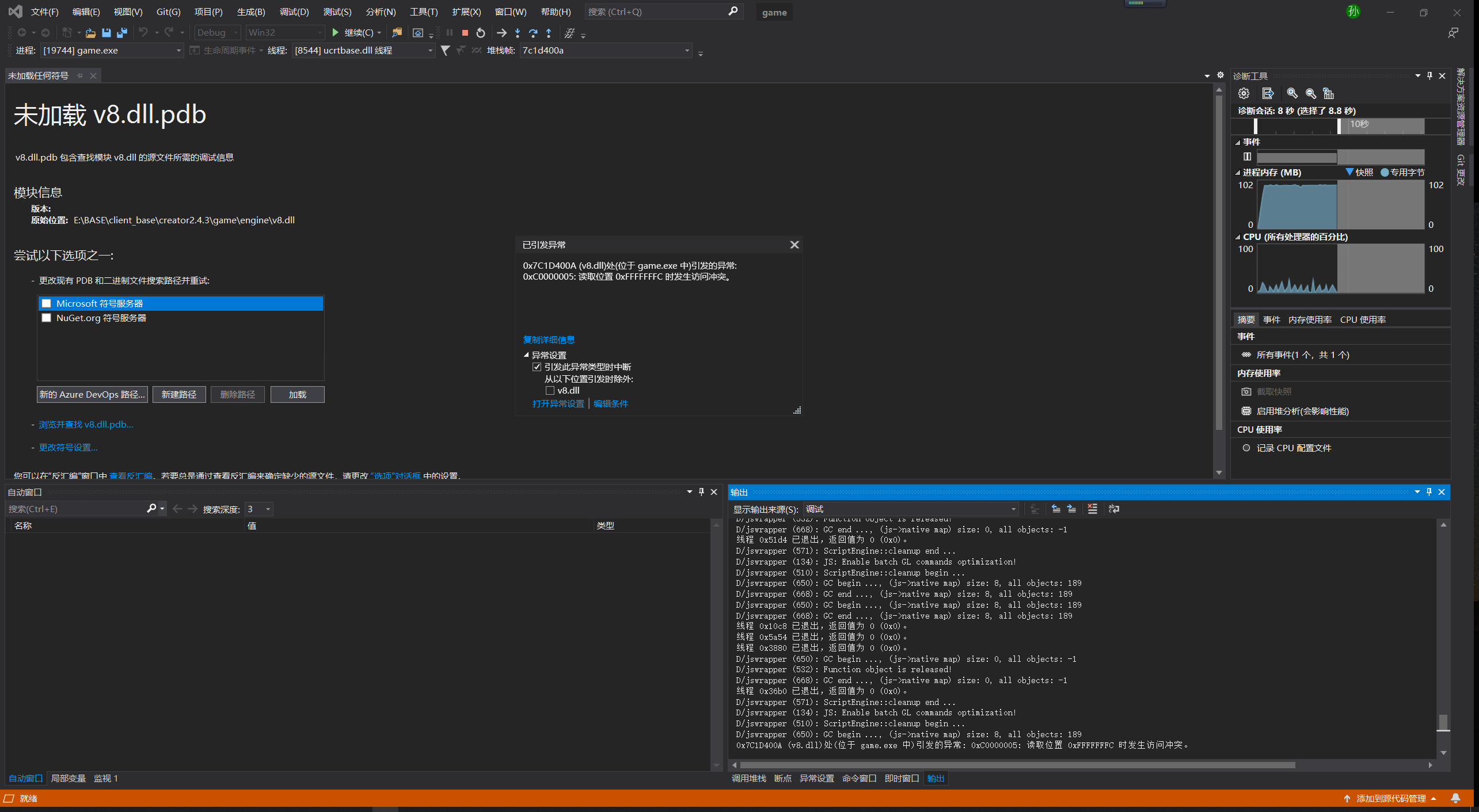 没什么具体的堆栈,用vs运行,崩溃的时候就显示这样