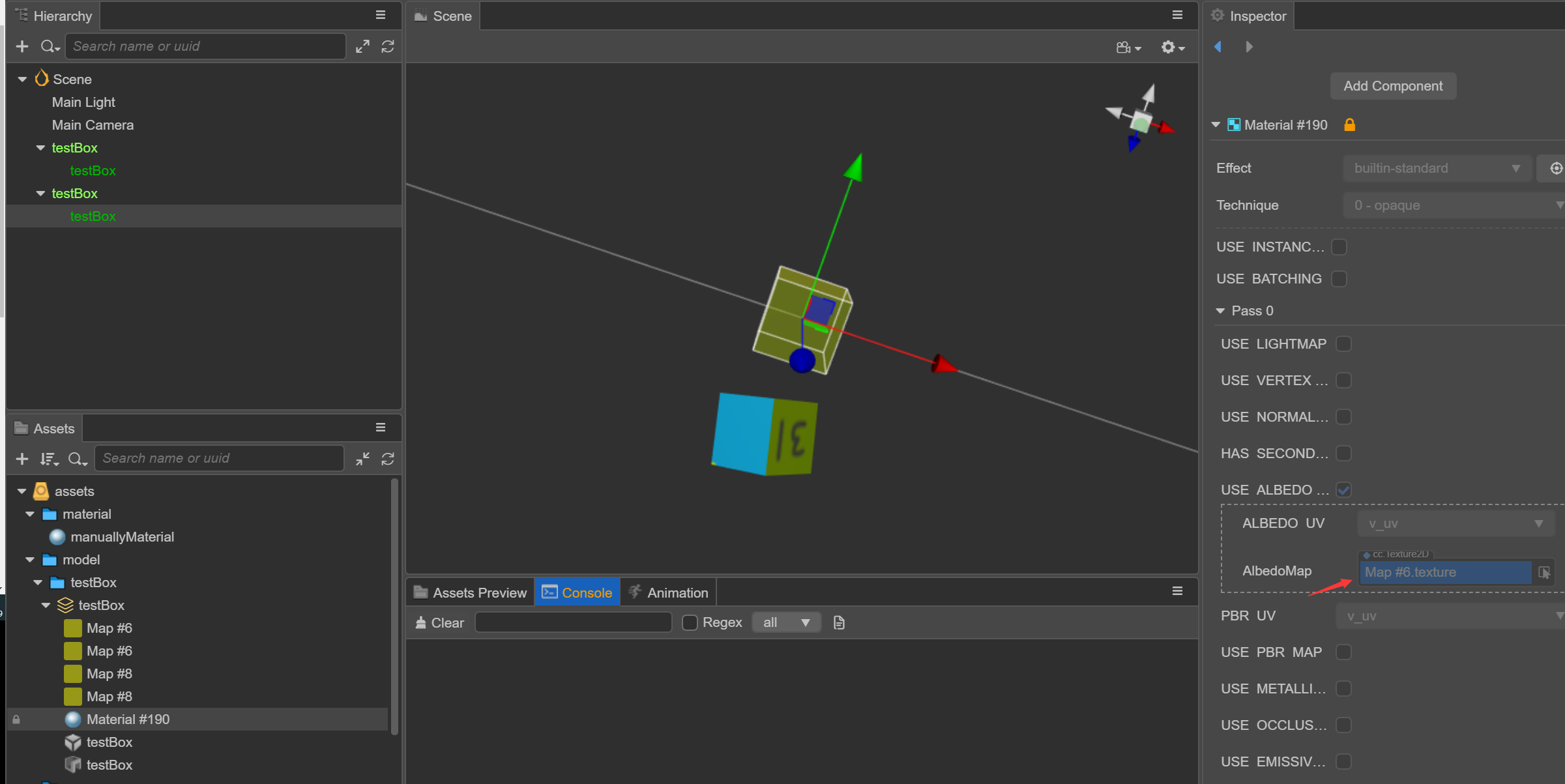 你好,“texture都沒有上去,整個mesh都是黃色的” ,试了下项目,testBox.fbx 里的材质 Material #190 使用 Map #6 这张 texture,是有上去的,它就是黄色的像素图