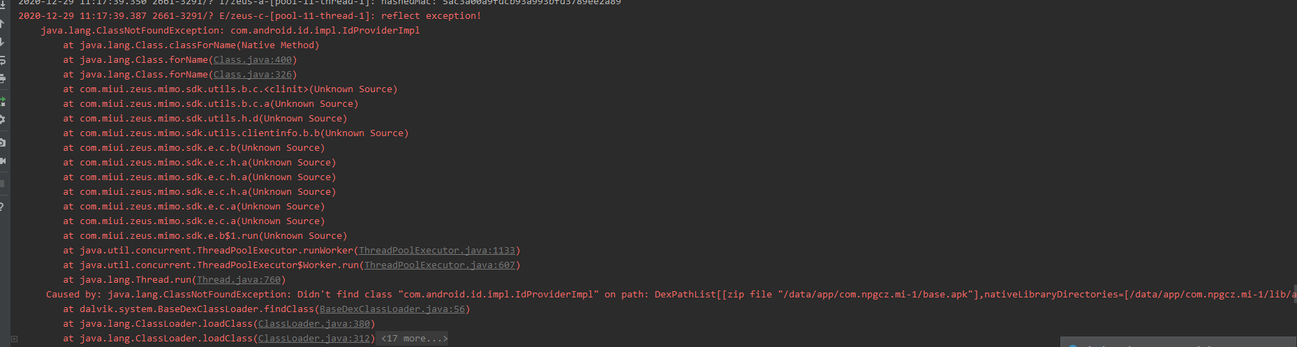 Didn't find class "com.android.id.impl.IdProviderImpl"