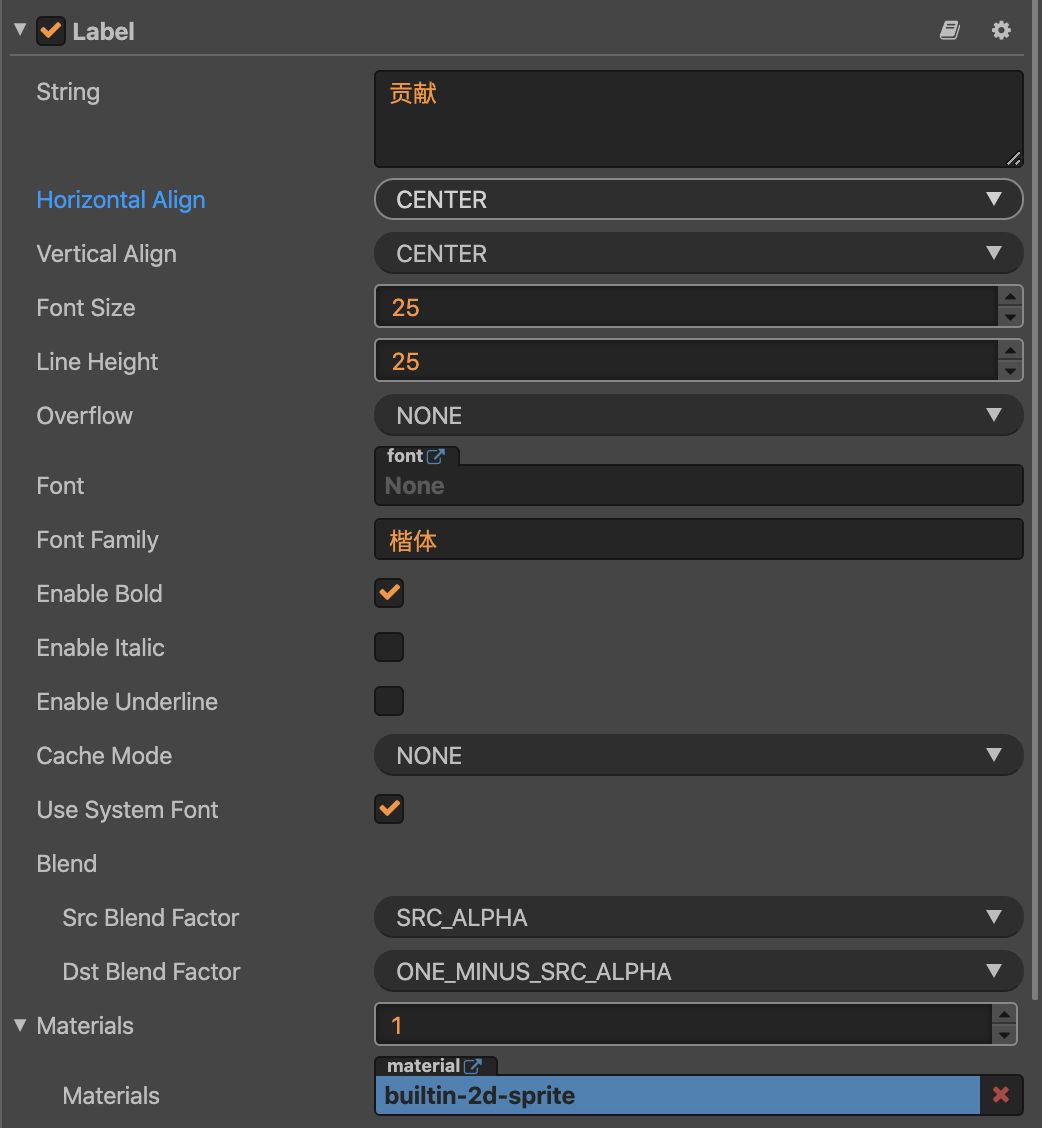 cocos版本 2.4.1 同事用windows,我用mac,windows和mac用的不是同一个楷体,所以让同事发了一份字体过来,并且已安装。已勾选UseSystemFont选项,将Label组件的FontFamily设置为楷体,仍然不生效,系统字体里面的中文名字的字体都不生效,英文的可以生效(图中的Kai字体就可以生效)不知道有没有人遇到同样的问题