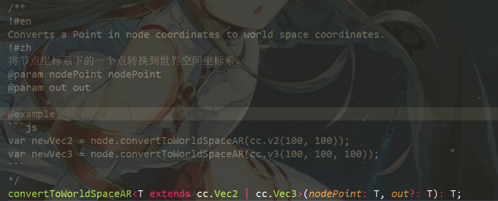 convertToWorldSpaceAR执行之后也会返回一个平面向量, 这个值会赋值给左边的pos,所以pos是一个向量,也就是坐标