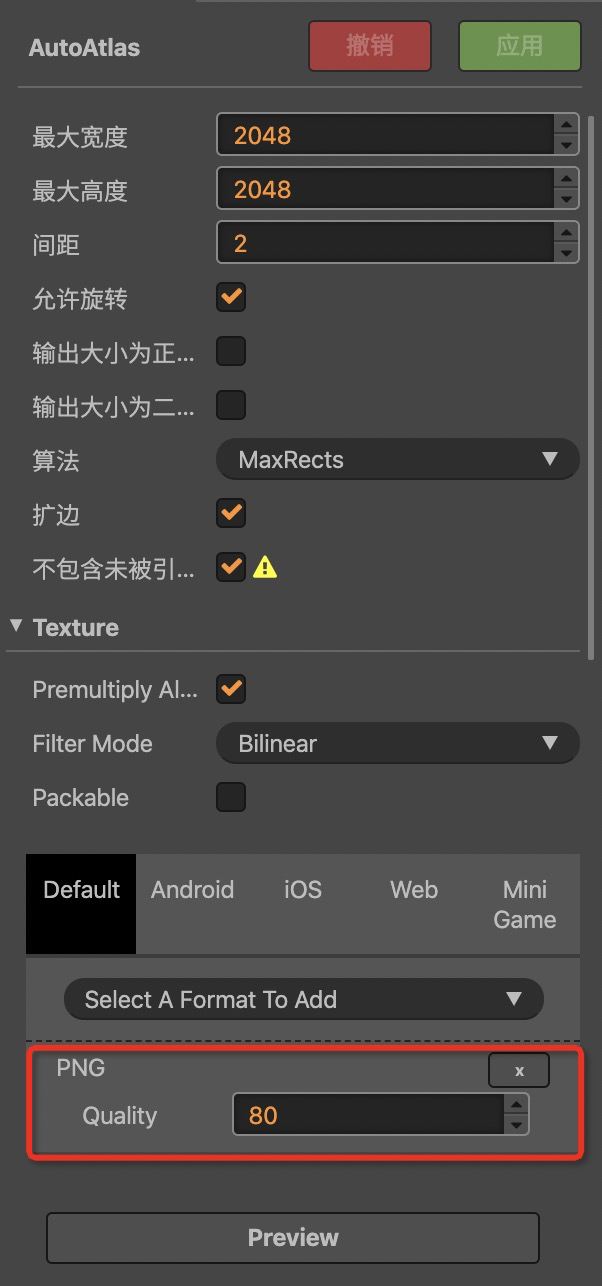 如上图,添加合图后选中PNG压缩,输出release版本后合图资源大小跟未勾选压缩的一样
