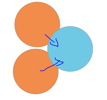 简单的三个圆形碰撞, 算法无非判断覆盖区, 然后按比反向运动. 但是摄像机总是晃动.
