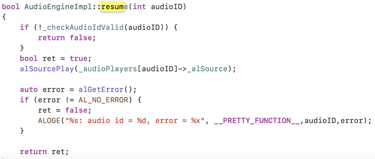 E/AudioEngine-inl.mm (557): bool cocos2d::AudioEngineImpl::resume(int): audio id = 2, error = a003