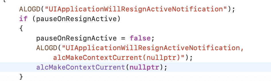 D/AudioEngine-inl.mm (176): UIApplicationWillResignActiveNotification, alcMakeContextCurrent(nullptr)
