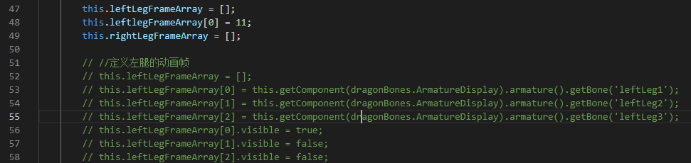 就下面这点代码,一开始测试效果的时候,就像注释掉的那部分一样,直接把骨骼信息塞到数组里。现在想把代码规整下,正常的用for语句来建立数组,然后莫名的报cannot set property ‘0’ of undefined的错误。