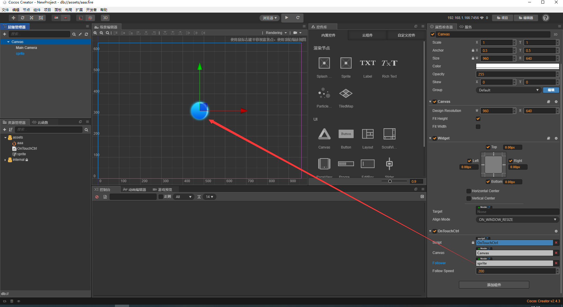 我要把中间的那个球,变成预制体生成,不把他摆在场景里面,实现相同的功能