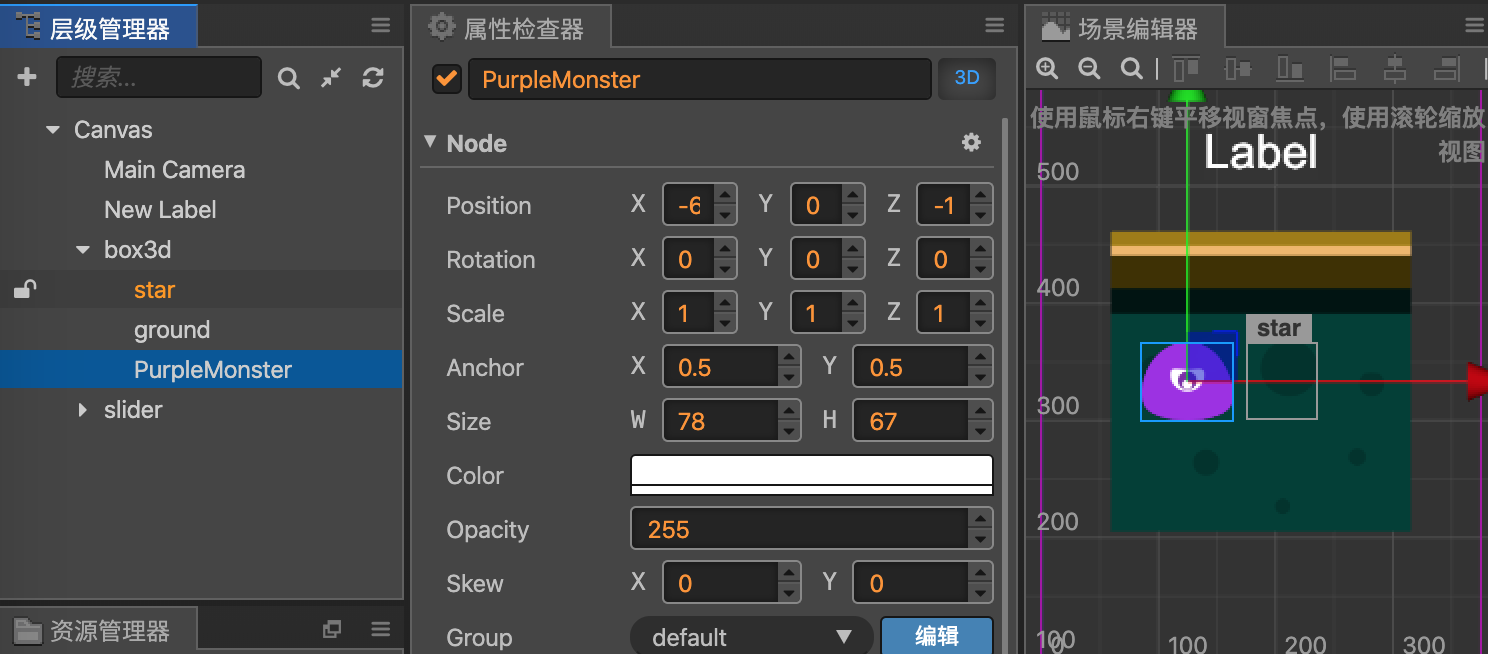 比如把purpleMonster放在ground上面