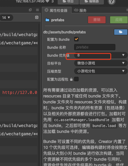 做分包的时候我将 图片,音频,预制体分到分包bundle中 ,但是如果将预制体 prefeb包的优先级设置为7以上 (即 >7) 则在打包运行到开发者工具后则 报错 cocos2d-js-min.js:1 Please load bundle prefabs first Error: Please load bundle prefabs first