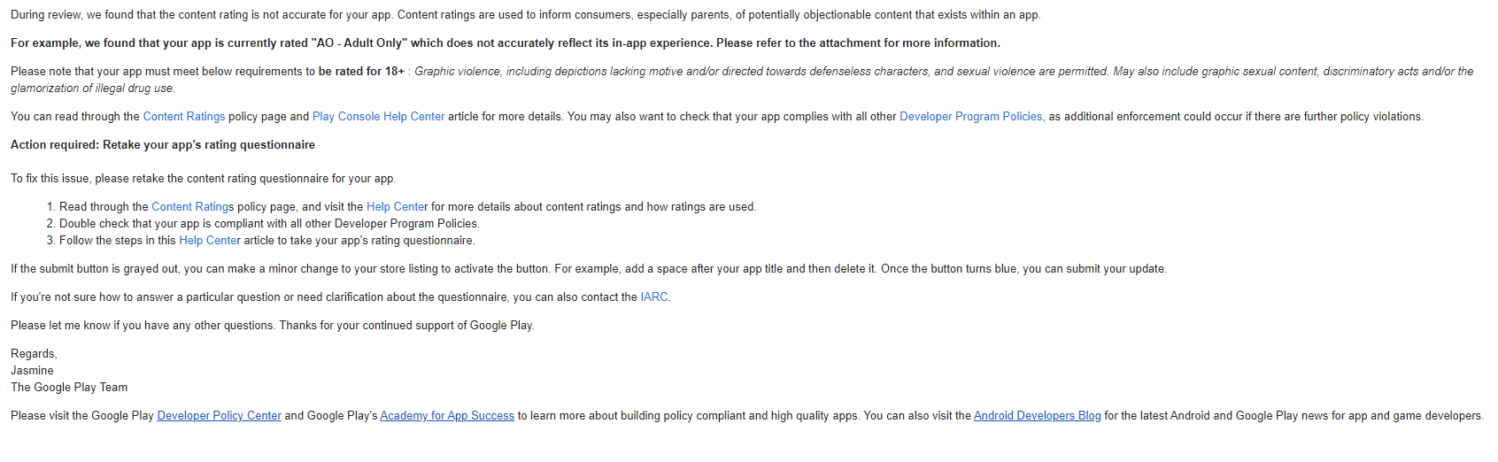 不是你想怎么分级就怎么分级的,如果你里面的内容被认为会吸引儿童依然不能填写18岁以上的,如果你填写了适合儿童就要走保护儿童的那一套机制,包括各种隐私声明…说白了是你先填好给谷歌检查,如果你的内容都是明显血腥暴力还好过审一些,如果是那种一看就适合小孩子玩的更麻烦