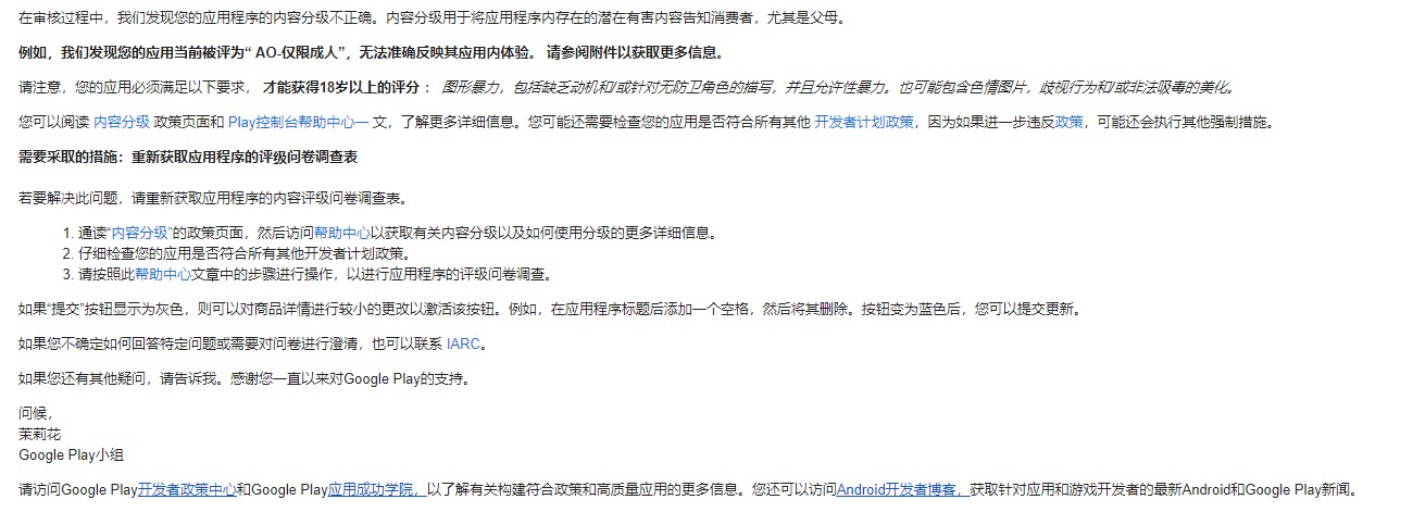 我提包一直被打回 说错误的将应用分级为仅限成人,
