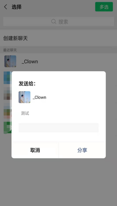 /** * 微信分享文字 * @param text 需要分享的文字 * @param type 分享类型 微信好友,微信朋友圈 */ private static void shareTextWx(String text,int type){ // 初始化一个 WXTextObject 对象,填写分享的文本内容 WXTextObject textObj = new WXTextObject(); // 分享内容 textObj.text = text; // 用 WXTextObject 对象初始化一个 WXMediaMessage 对象 WXMediaMessage msg = new WXMediaMessage(); msg.mediaObject = textObj; // 消息描述 msg.description = "测试"; SendMessageToWX.Req req = new SendMessageToWX.Req(); //transaction字段用与唯一标示一个请求 req.transaction = buildTransaction("text"); req.message = msg; // 发送的目标场景 // 分享到对话:SendMessageToWX.Req.WXSceneSession // 分享到朋友圈:SendMessageToWX.Req.WXSceneTimeline // 分享到收藏:SendMessageToWX.Req.WXSceneFavorite if( type == SceneTimeline ) { req.scene = SendMessageToWX.Req.WXSceneTimeline; } else if( type == SceneSession ) { req.scene = SendMessageToWX.Req.WXSceneSession; } //调用api接口,发送数据到微信 api.sendReq(req); }- 微信分享图片方法