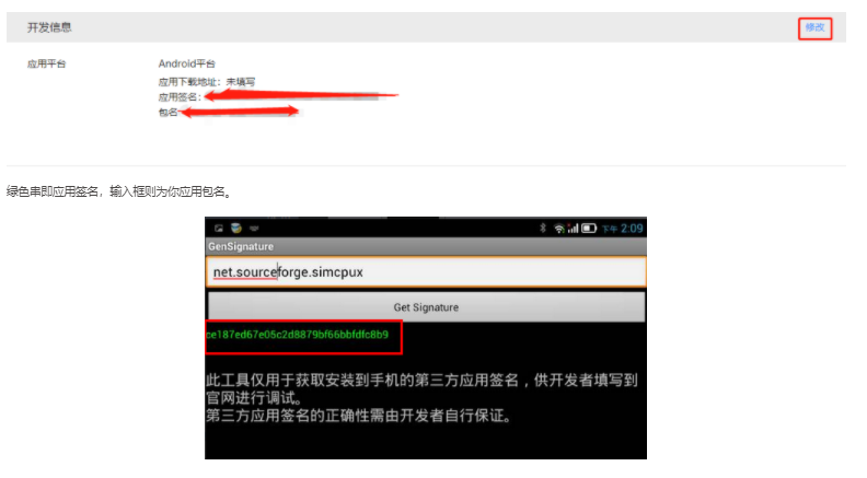 在开发测试阶段需要用官方给的工具进行生成应用签名,并在微信开放平台->管理中心->应用详情->开发信息进行修改,签名工具下载地址https://open.weixin.qq.com/zh_CN/htmledition/res/dev/download/sdk/Gen_Signature_Android.apk