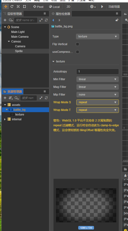 从外面直接拖入图片资源默认的类型是texture 没办法直接在精灵节点上托入使用