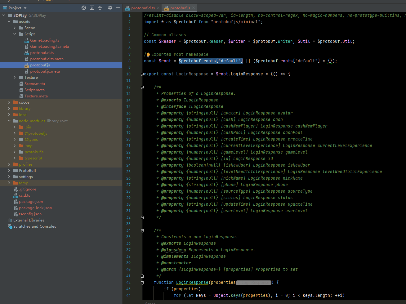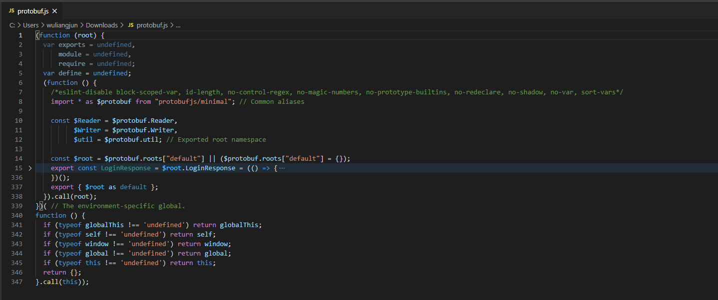 导出的js文件顶部有一个导入 protobufjs 的代码。问题在那 找不到文件