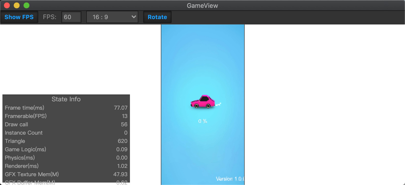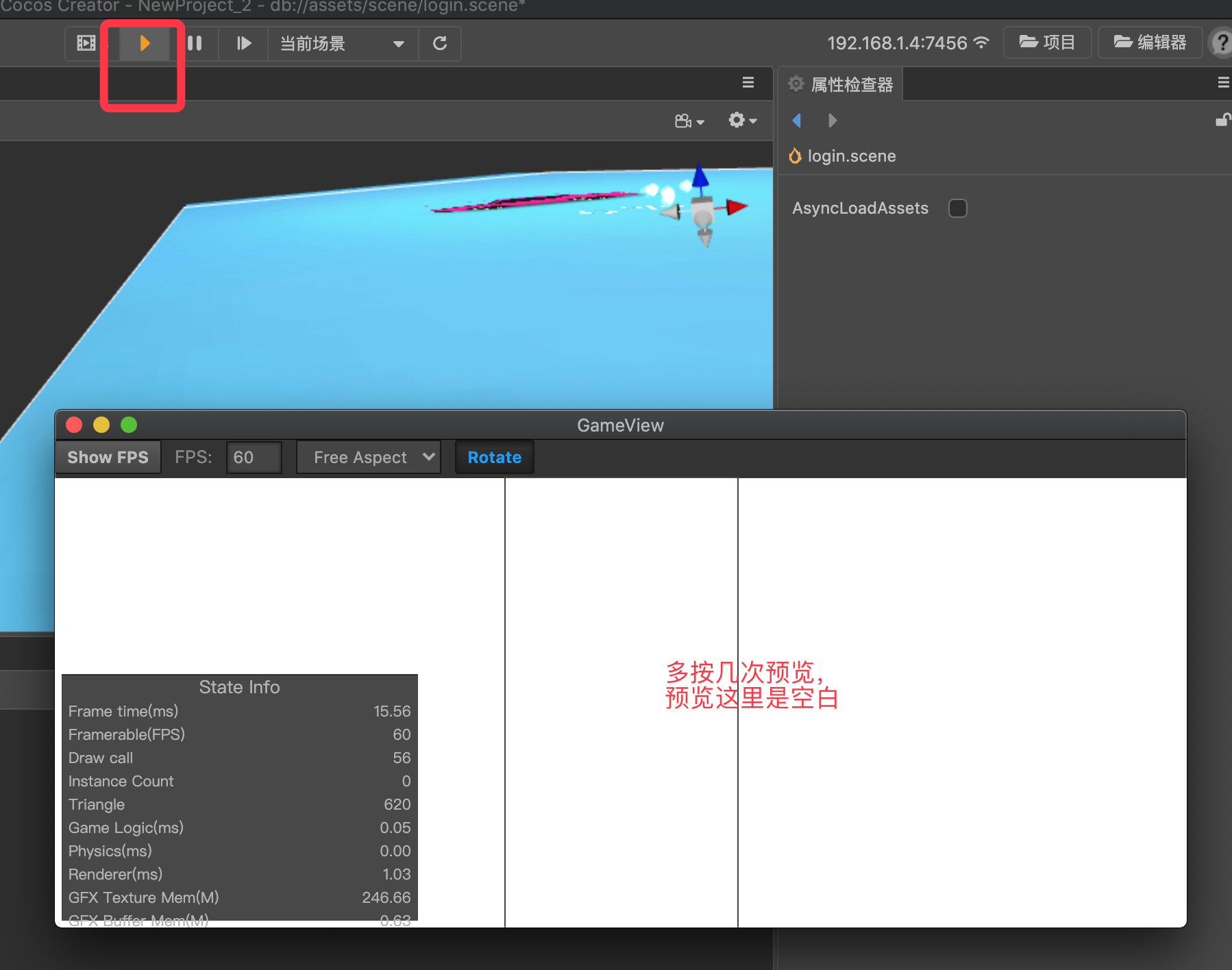 我们默认的预览是浏览器预览,目前 GameView 还处于初级实现,我们可以进一步标记一下