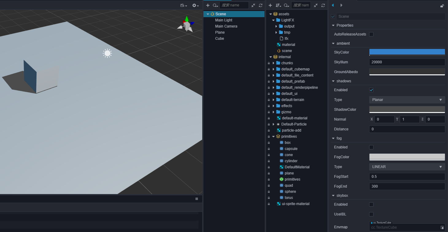 新建工程,创建平面和正方体。打开阴影相关设置。(正方体的shadowCastingMode设为true,Scene的shadow的enabled勾上,type为Planar)