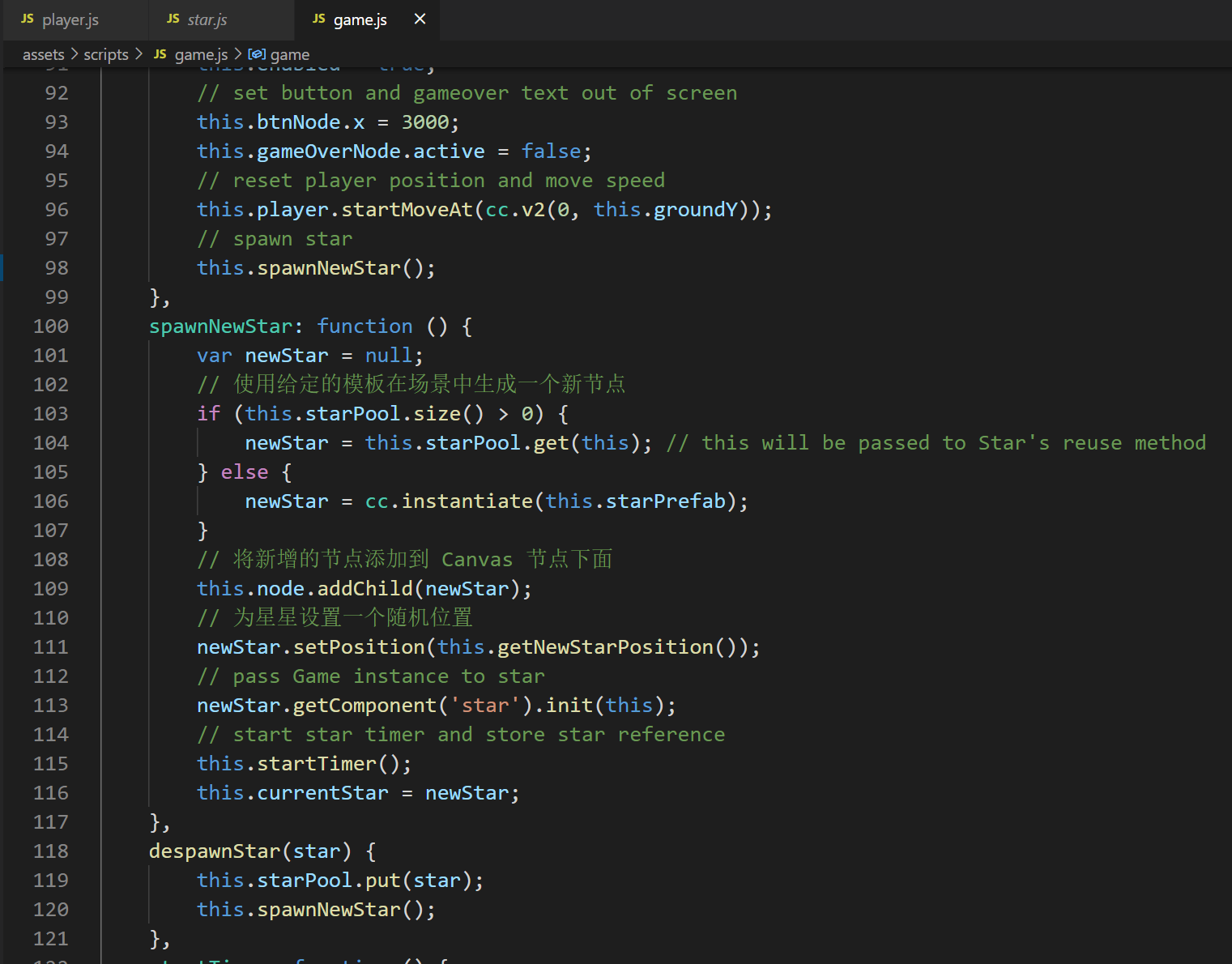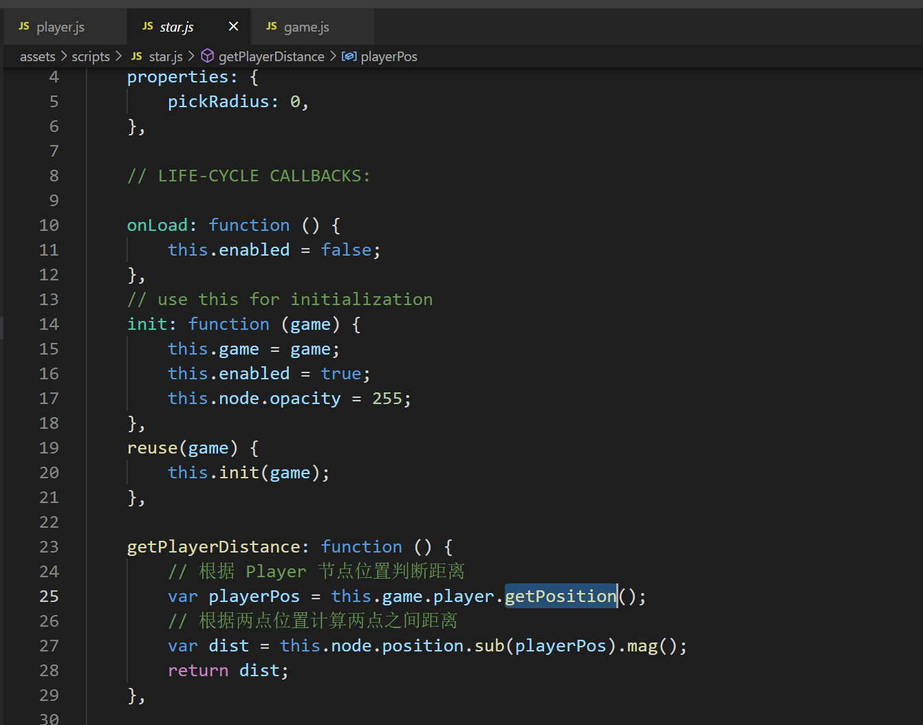 重现方式:无法在star.js里面调用player.getPosition()方法