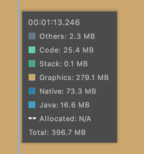 安卓原生平台, 如果用Android Studio中Profile工具分析, 发现Graphics占用高达279多MB, 但是遍历cc.loader._cache, 统计所有图片资源大小, 才几十MB, 这也差太多了吧, 求官方解答下,以便我针对处理