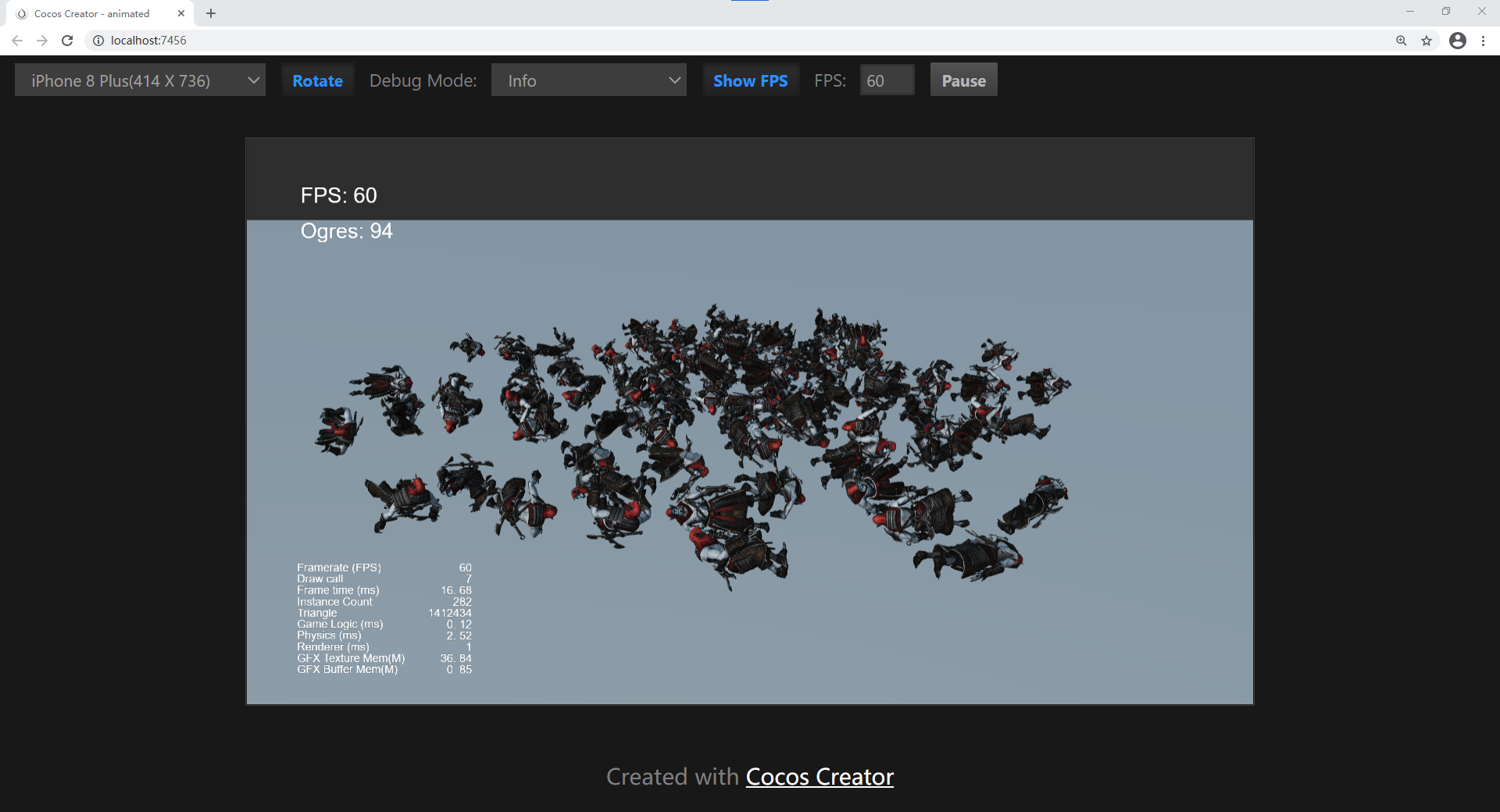 看起来单纯角色动画这块,Cocos Creator 3.0优化的非常棒,通过这些测试也对Cocos Creator越发的有信心,为引擎组点赞!