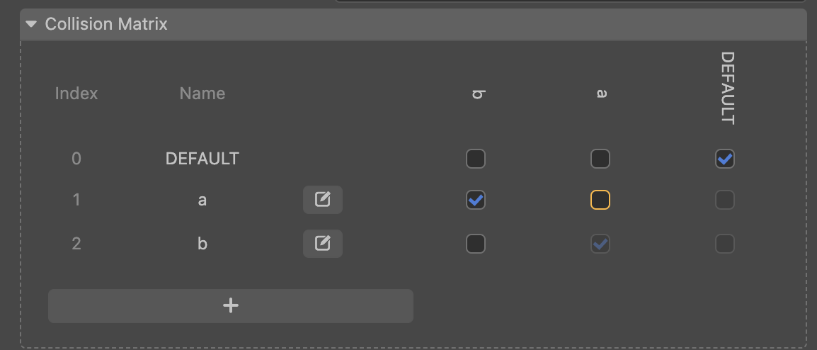 设置这样一个collision matrix, 物理碰撞引擎为buildin