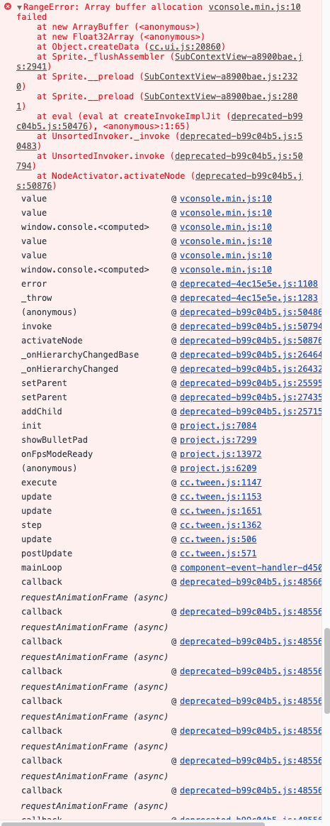 打包UC,正常运行没问题。使用UC的刷新之后,会卡死报如下异常: RangeError: Array buffer allocation failed