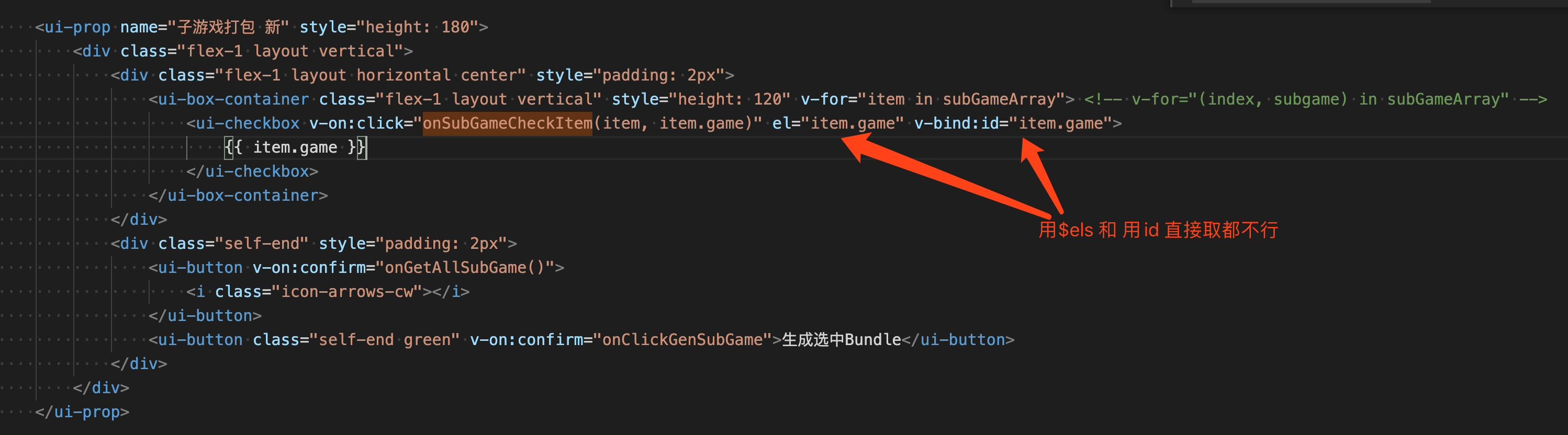 试了 v-model 不行 然后看了一下,好像 用的是vue 1.028 好老的版本啊~~~