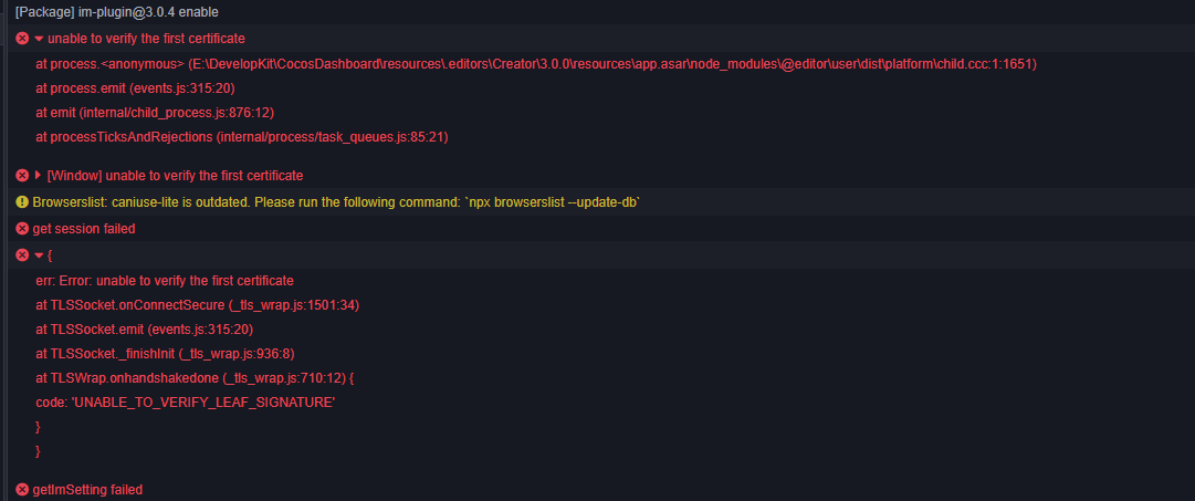 Error: unable to verify the first certificate