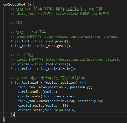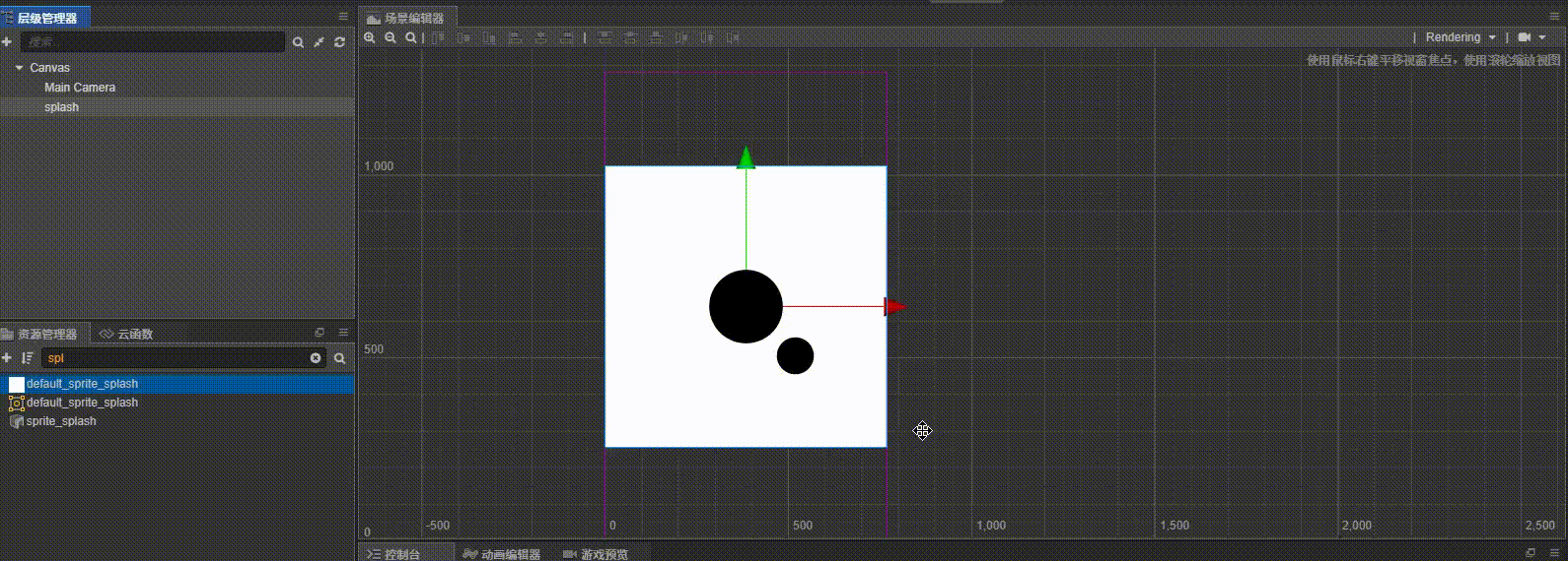 创建了2个circle, 位置相差50个单位,分别应用_view.scale之后,场景放大缩小时,两个圆的位置也不知道要分离到哪里去,文档也没有扩展组件整体放缩的完整解决方案,开发者实现难度不亚于重写editor