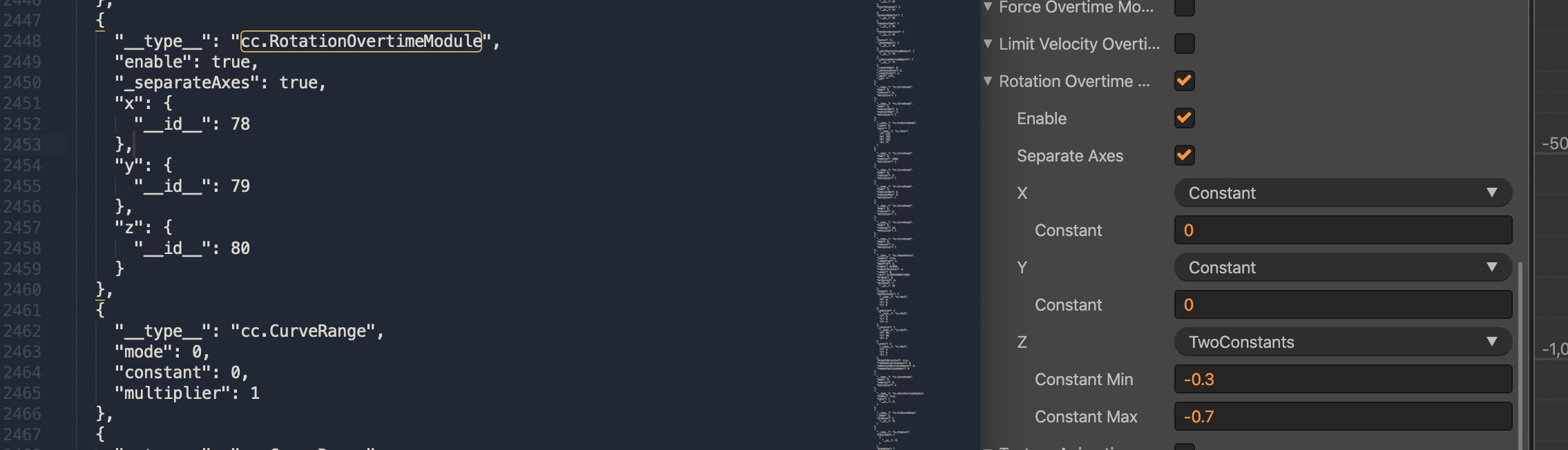 - Rotation Overtime Module的 Separate Axes 无法勾选,勾选后编辑器自动反勾选。这样一来,只有z轴有效。然而按理说我理解的z轴旋转就是在2d游戏里面贴着镜头面旋转,而事实上不是的。它会根据start rotation,围绕贴图平面内的一条线进行旋转。
