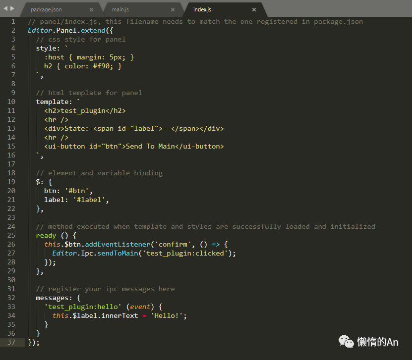 main:指向了panel/index.js文件;index.js决定了面板的样式和交互逻辑