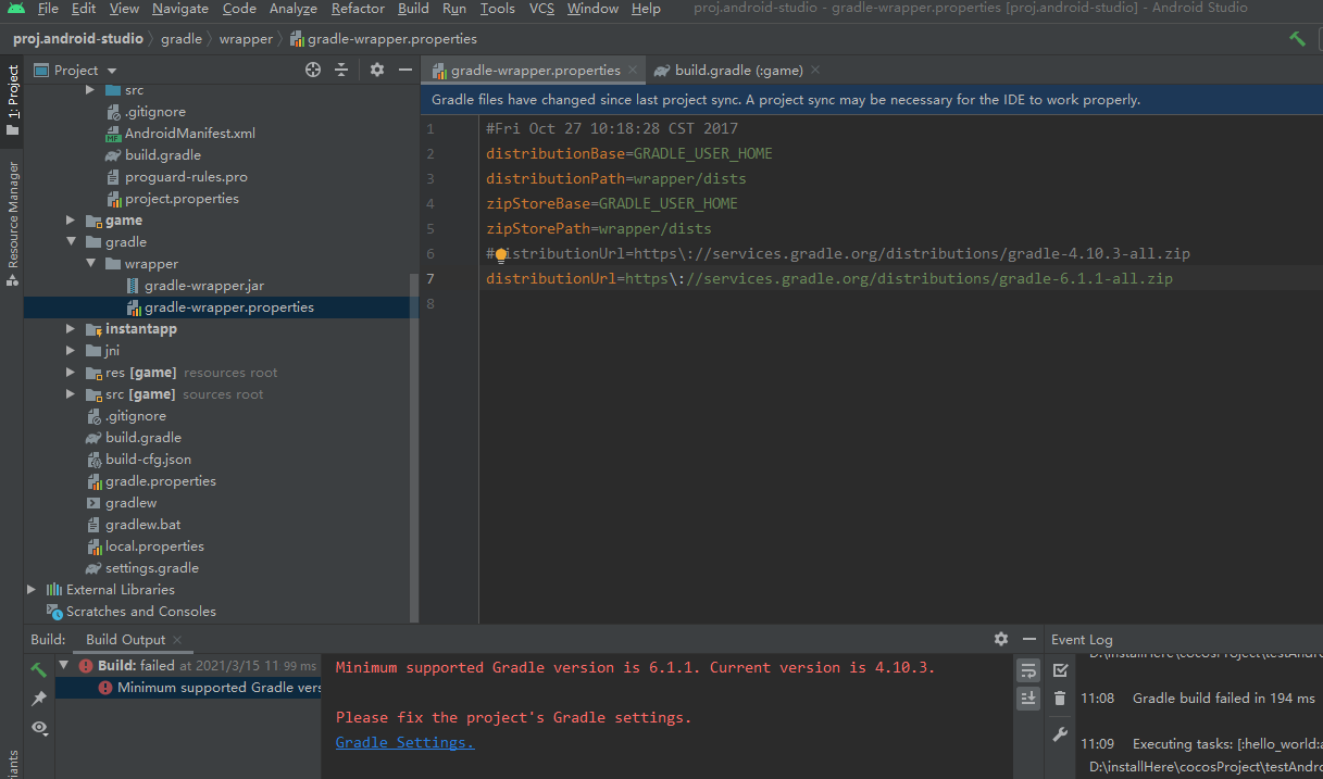 cocosCreator 构建导出 生成一个proj.android-studio 导入androidStudio