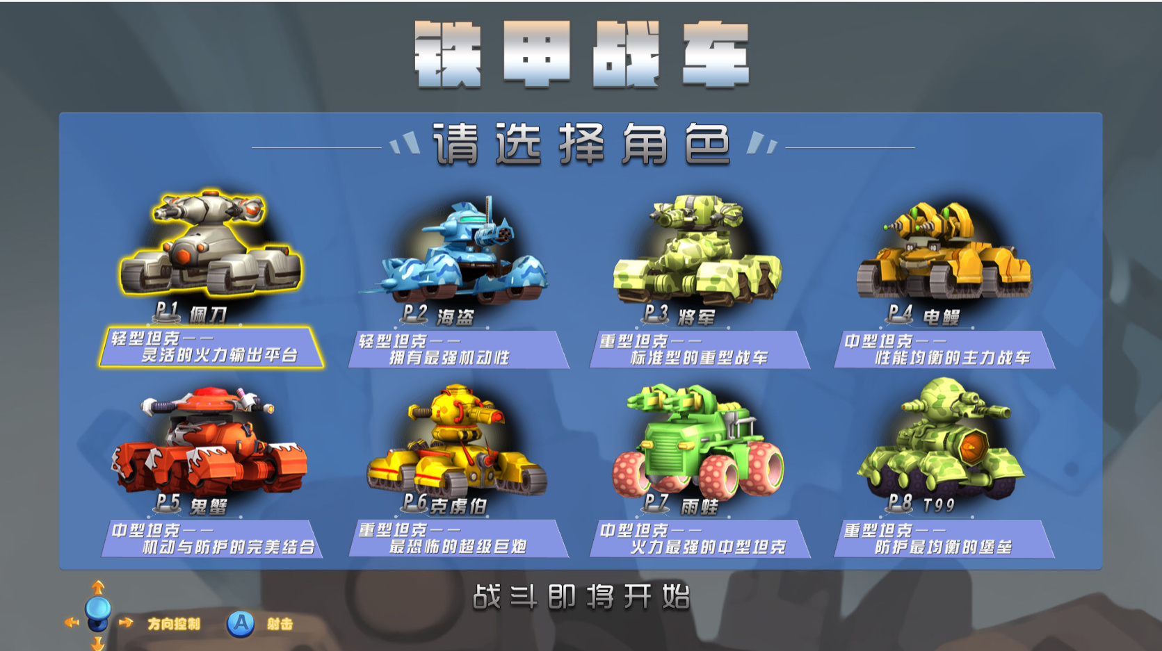 进入游戏选角界面按方向键选角,按H键确定角色,准备进入游戏。