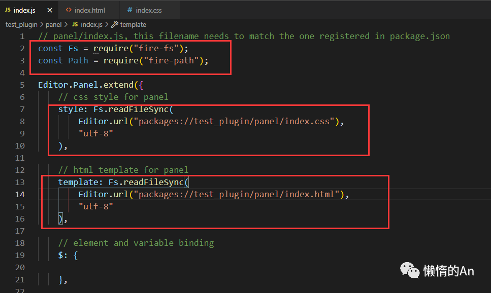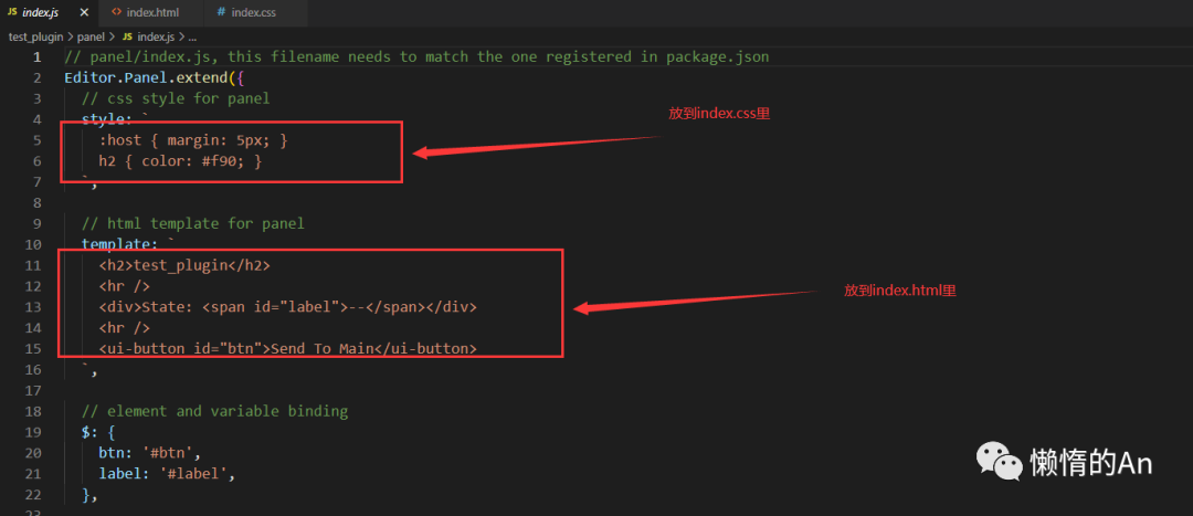 如何使用:在代码编辑器中打开插件脚本,在panel文件夹中新建index.html、index.css文件,