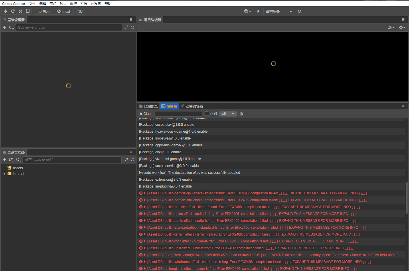 CocosCreator3.0创建的空项目一启动就报错,还什么都没改过,就是CocosDashboard创建的新的EmptyProject,把CocosDashboard和CocosCreator3.0都卸载了,重新下载也不行 -