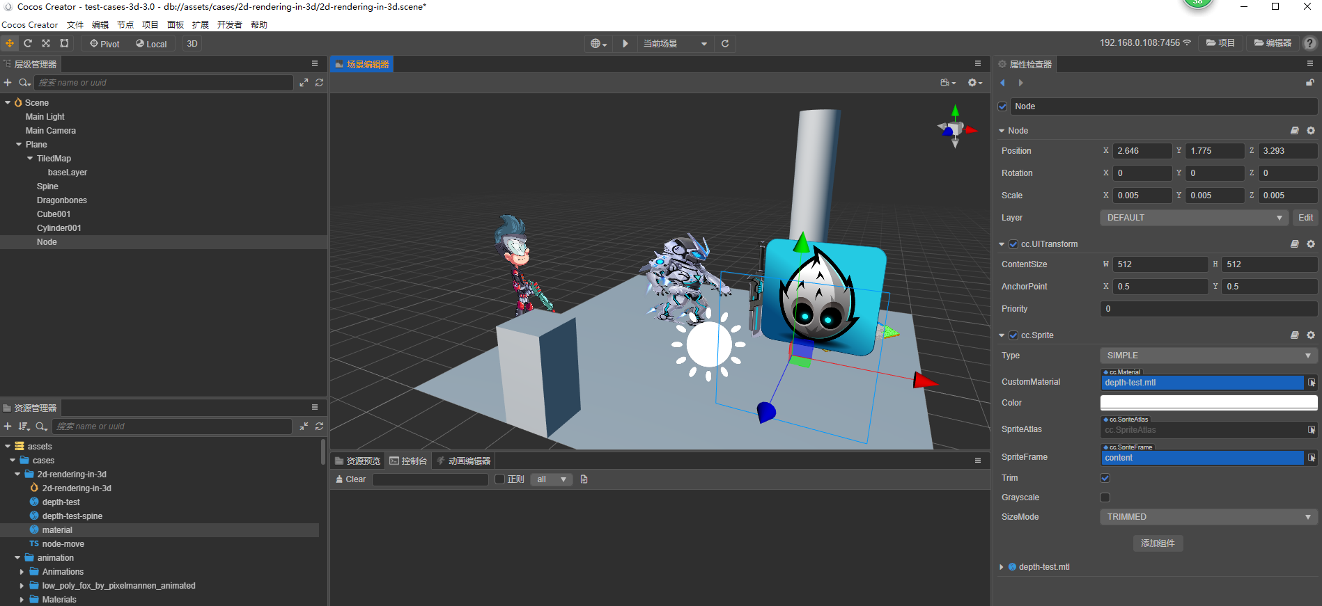 引擎版本:3.0.0 操作系统:win10 新建了个sprite,也使用了例子中的材质,怎么修改z无效呢