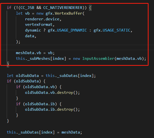 不走这一块,导致subMesh是空的,然后这个方法就不起作用了,可以看看图
