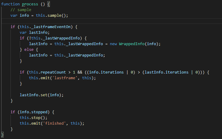 很早以前我好像尝试过通过duration来判断是不是到了最后一帧,是的话就采用finish的回调,stop回调作废,但好像之前遇到了啥BUG,就懒得搞这个事了