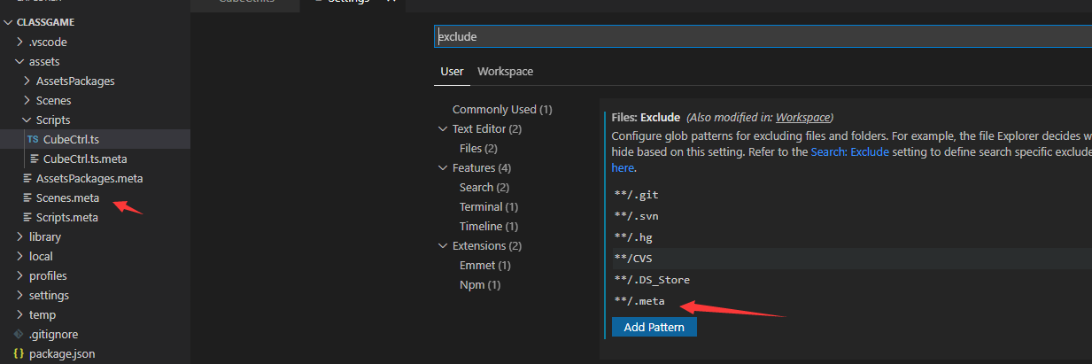 如题,按网上盛行的方法,设置用户区和工作区的 files.exclude 和 search.exclude,加上Meta,可是浏览explore列表还是依然显示Meta文件,到底是怎么设的呀,请大佬指教