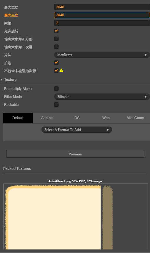 预览项目或者在 Cocos Creator 中使用碎图的时候都是直接使用的碎图资源,在 构建项目 这一步才会真正生成图集到项目中