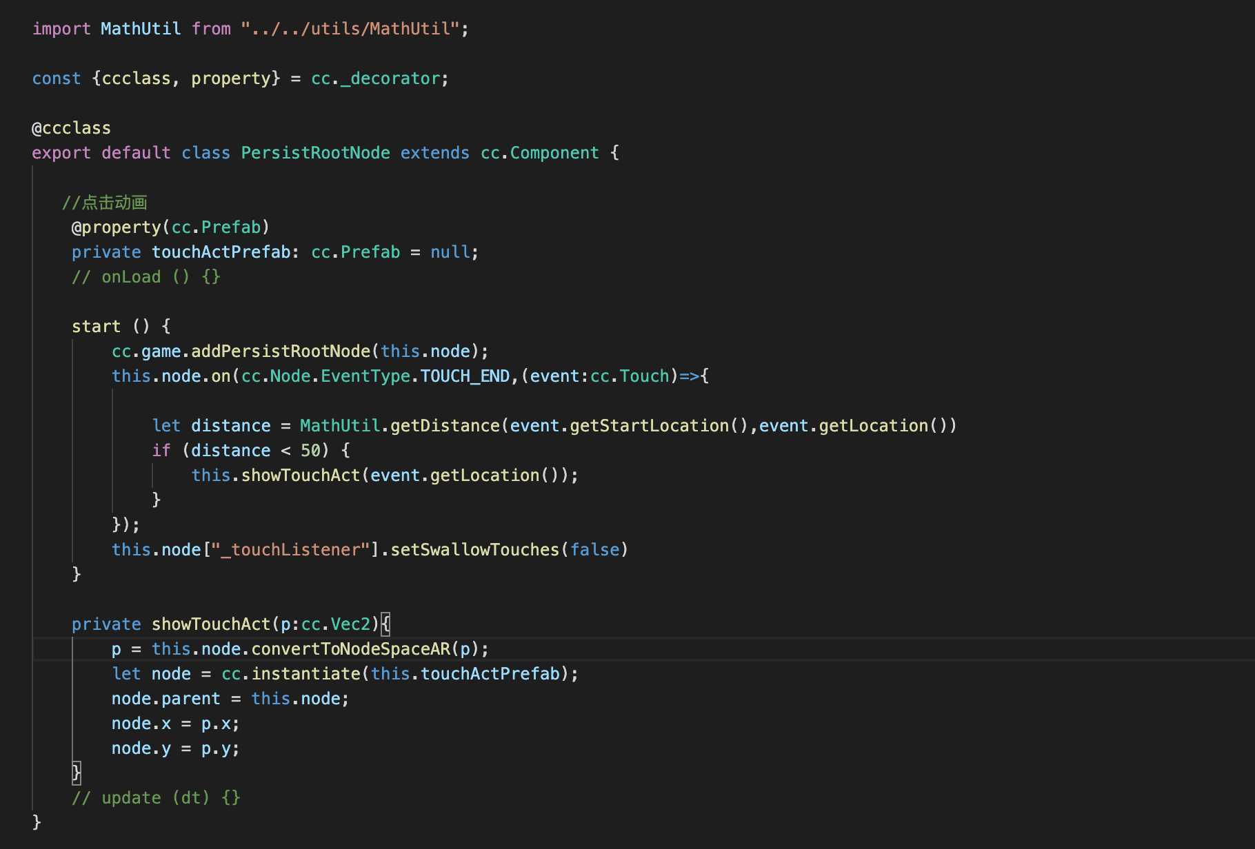 应该是在屏幕最上层 加一个 层来处理点击,获取坐标 播放动画