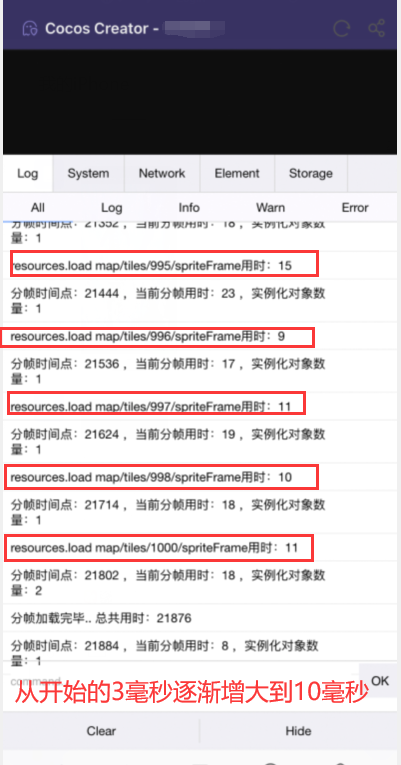 【问题1 之 直接循环load 500个sprite,掉帧持续10秒】