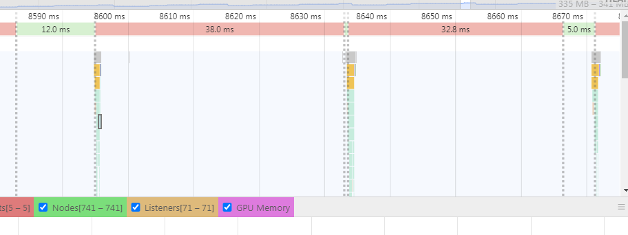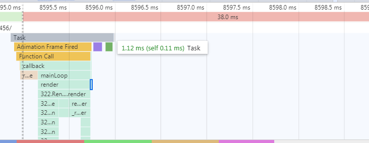 在对项目用chorme 进行 performance 记录之后,观察项目的 每帧耗时,发现如下: