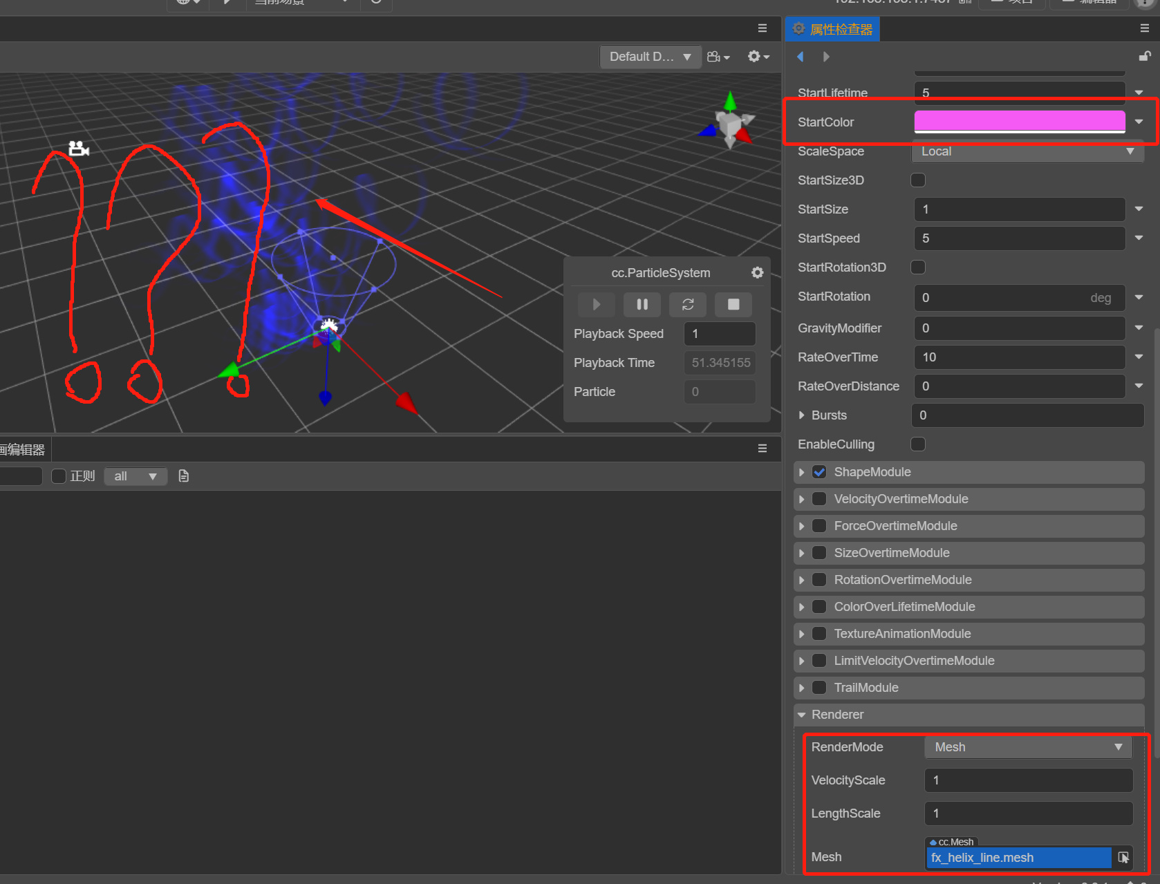 render模式选用mesh,把特定的mesh拉进去,调整颜色不生效。永远显示忧郁的蓝色,让人肥肠忧郁