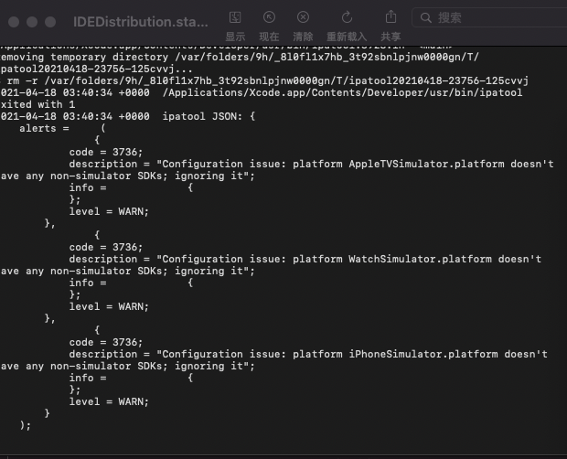 xcode12模拟器,真机调试可以,但是打包报错distribute App时报错