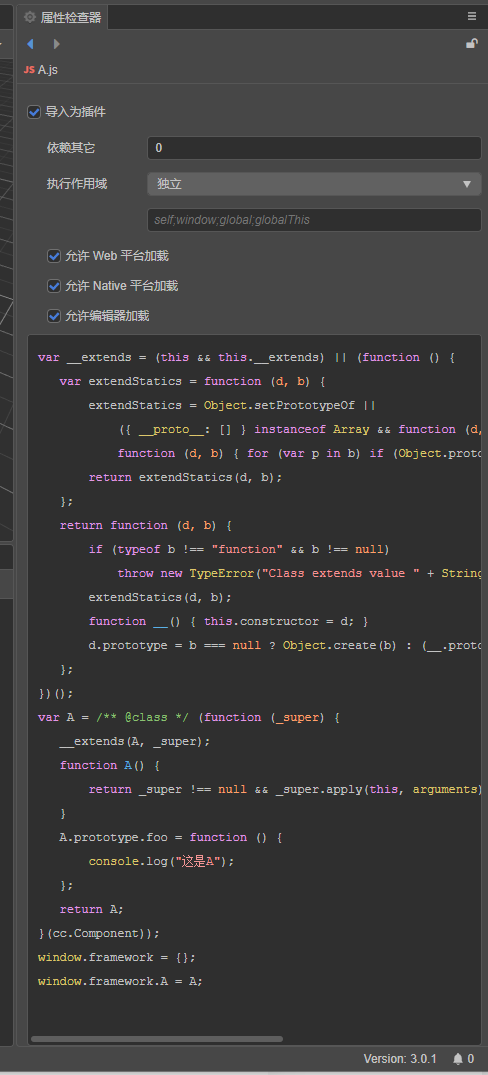 编辑器ES6,预览又ES5,这是引擎的环境配置问题吧。2.x又不见有问题。而且又不能设置脚本顺序。只能在插件脚本里先定义好需要用的类,在代码继承的时候才不会报错。当普通脚本需要import一堆文件,打开一个脚本全是import公共代码了。现在搞的插件脚本环境又不一样,那这插件脚本有啥鬼用?